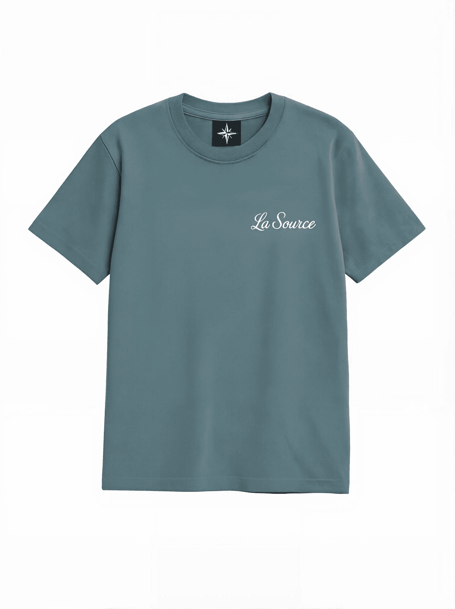 -Clean La Source script logo on left chest